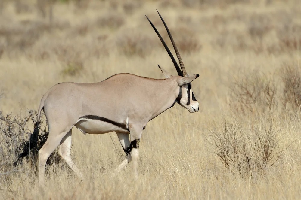 Interesting fact: Both sexes can be hunted. Gemsbok are very tough animals with a survival instinct unequalled in other antelope. Your first shot has to count and must hit a vital area.